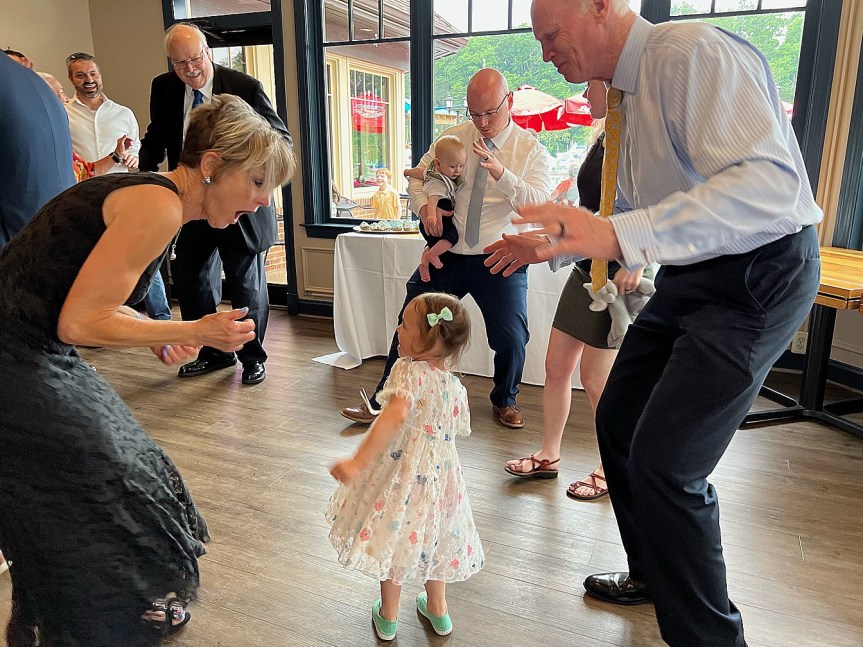 I love this photo: Maelle dancing between my mom and dad, and in the background you can see Andrew, an uncle and a groomsman all having fun as well. It was that kind of wedding–lots of dancing and laughter. There was even a sandy spot outside where the kids were able to play.