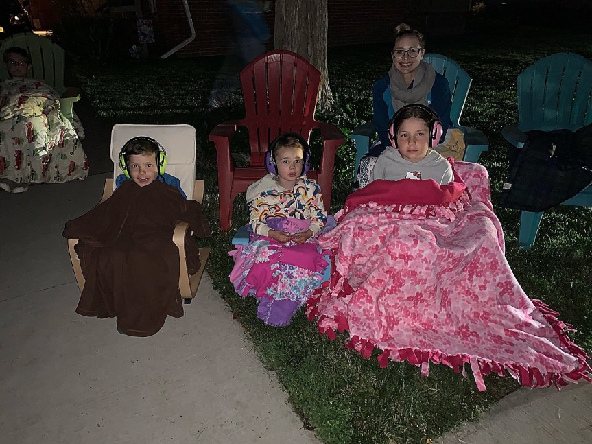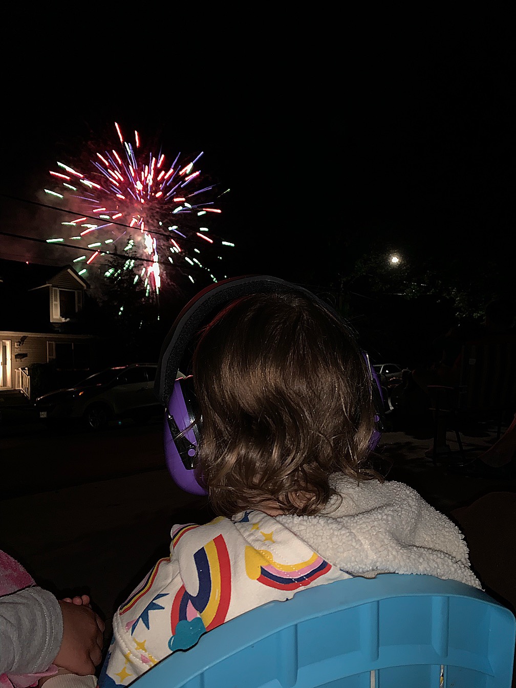 Once the sun went down, we moved our chairs to the front yard to watch the fireworks. Maelle sat with her little besties and they all did really well with the lights and noise.
