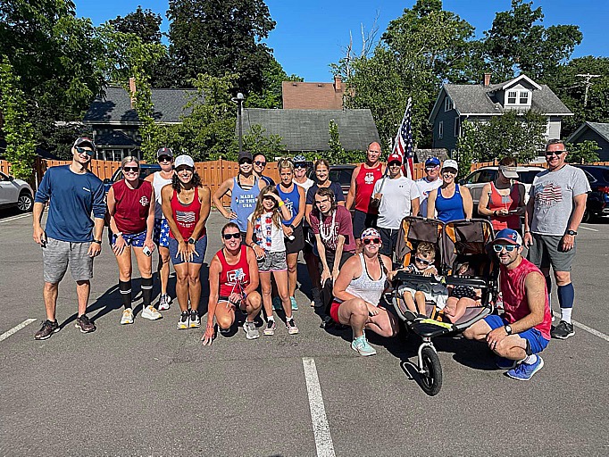 The following morning, I joined my running group–not just the stroller mamas–for our annual July 4th holiday run. One of our members enjoys mapping out unique routes that spell different words or make fun pictures, and this year’s word was ‘free.’ It wasn’t a long run–perfect after a busy day and late night with friends!