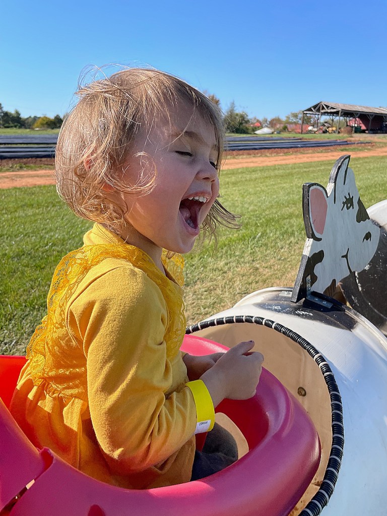 The following day, we all headed to a local pumpkin patch for some fun. We made the kids pose for photos with the pumpkins, enjoyed a small picnic ‘snack’ and let Maelle ride the tiny cow train.
