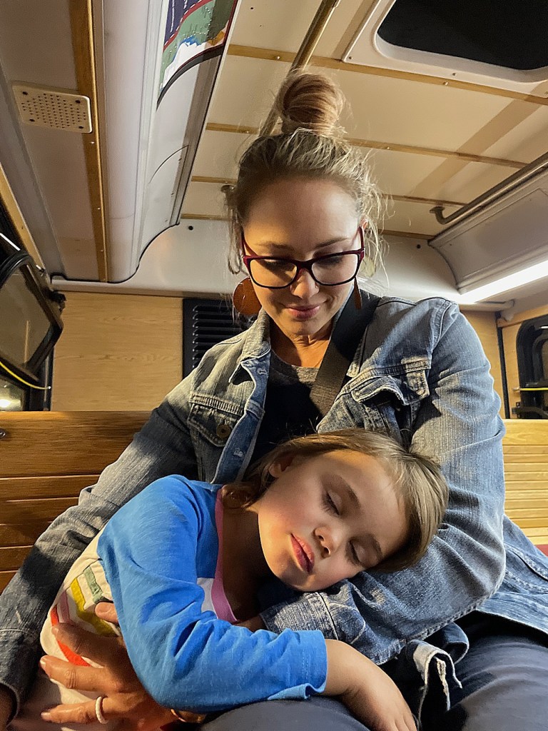 She also fell in love with the King Street Trolley! This was the first trip she really voiced a desire to ride it, so we did…more than a few times. She’s not asleep in this photo; Maelle loves to pretend these days!