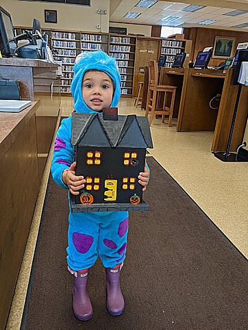 And as a nice little surprise, Maelle won the Haunted House giveaway at the library! It was hand-painted by one of their volunteers, and filled with candy, which was (obviously) her favorite part. It will make a fun decoration for years to come.
