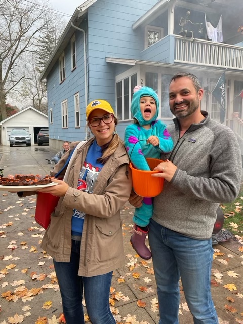 One of the things our little village does so well is Halloween. It’s so fun to walk around the village and see all the fall, Halloween and Bills yard decorations out. My favorite is the house with the giant Bills skeletons, complete with jerseys and smaller skeletons to represent whoever we’re playing in the next game–the owners rearrange them each week in a funny scene that amuses everyone.