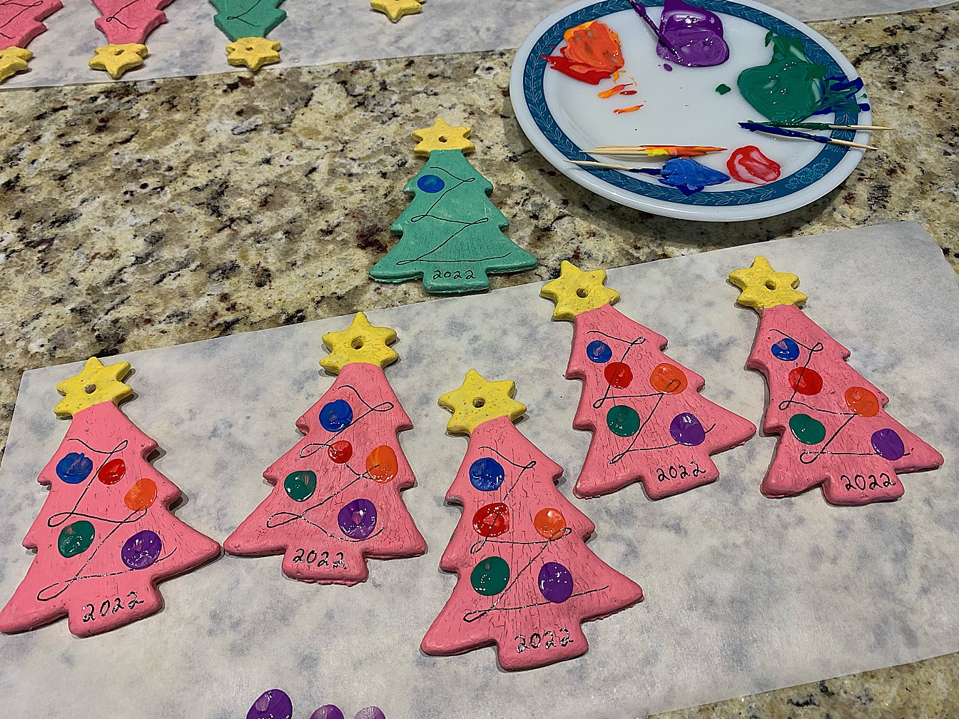I did another ‘creative’ project this Christmas: salt-dough ornaments! I saw them on Instagram and the cute pink trees caught my eye. Originally I thought it would be a fun craft for Maelle and her cousin, Nora, but I didn’t want her boy cousins to feel left out, so I ended up making an entire batch. I prepped and painted them, then had my SIL’s help with the kids’ fingerprints. Maelle gave one to each of her grandparents, and we gifted one with ALL the Layer grandkids’ prints to Andrew’s parents.