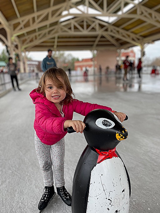 Later that week, we drove to DC to celebrate Christmas with my family. Maelle got to try ice skating! It was almost WATER skating, since it was so warm there 🙂