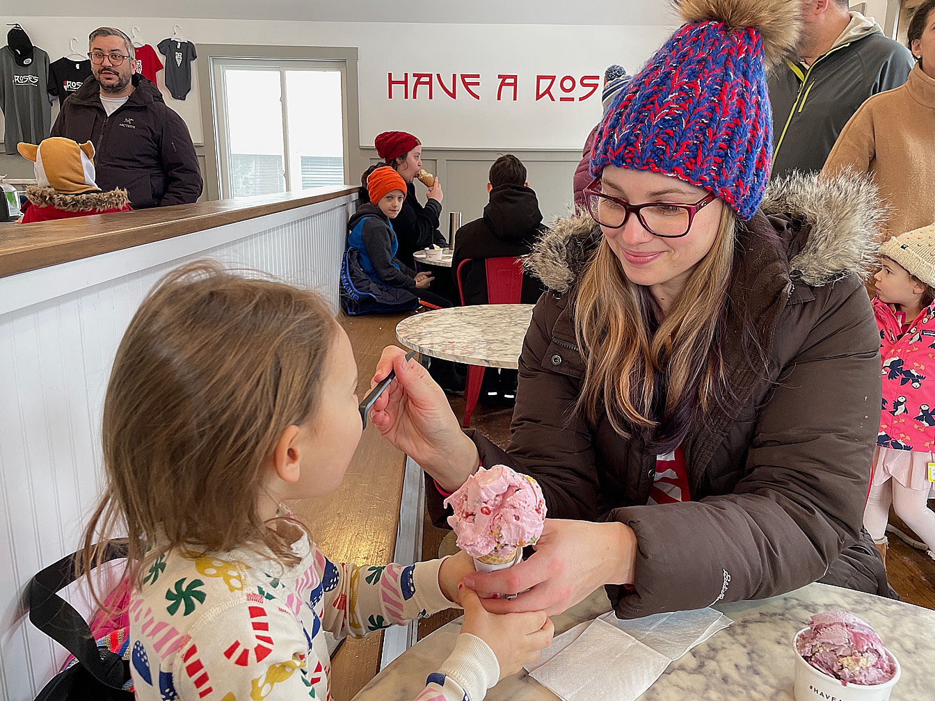 The first weekend in February was National Ice Cream for Breakfast day! Our favorite little spot opened early that morning and gave everyone who arrived in their pajamas a discount! Of course we did 🙂 We saw lots of kiddo in jammies, as well as some parents!
