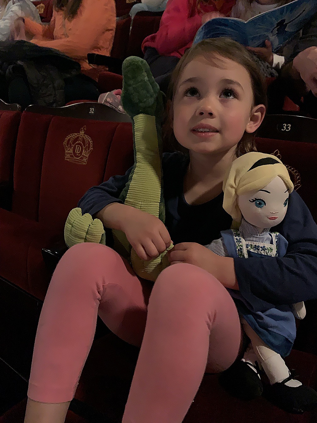 After lunch, saw Frozen the Musical! I honestly wouldn’t have known it even existed, but my mom told me about it and Andrew encouraged us to go. (A small part of me wondered if she was a bit too young, or if it was too spendy for a toddler.) She wasn’t and it wasn’t. She absolutely loved it, and I found tickets in the nose-bleed section for cheap. Despite how high up we were, the view was fantastic! My only regret is that she wasn’t in an Elsa dress like many of the other girls, which she noticed. Next time.