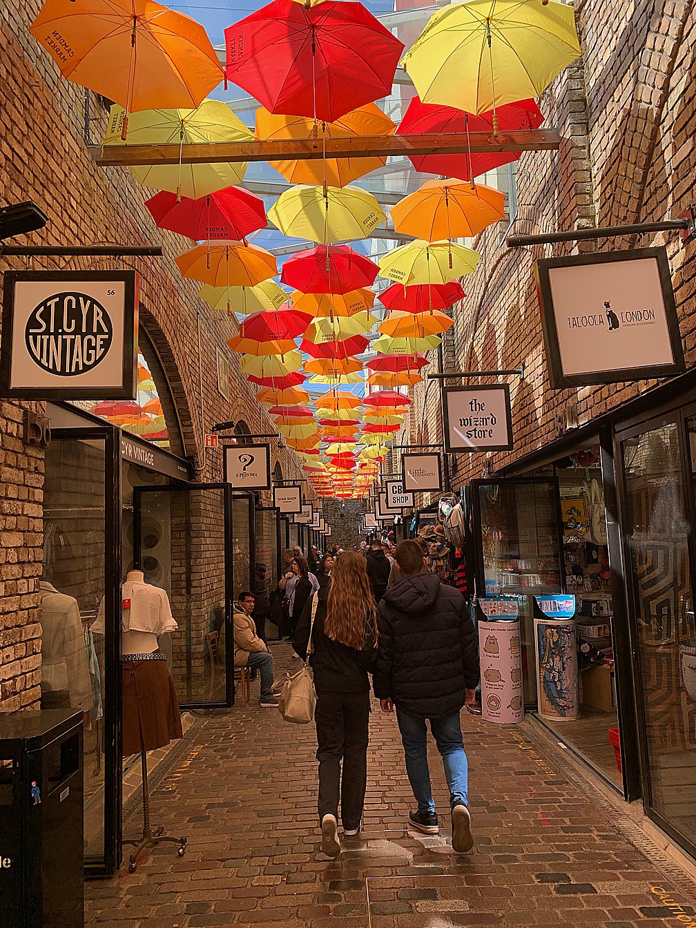 (It’s possible the entire event had been triggered by something that happened earlier that morning. I remember getting on our train to Hampstead Heath and having to close my eyes to avoid seeing the landscape whizzing by, which isn’t normal for me. Prior to boarding our train, I had been really interested in all the movie/musical/advertisement posters plastered along the walls of the tube, and I was actively trying to read many of them, even lagging behind Andrew and Maelle sometimes. Again, not normal for me. I suppose it’s possible that all that walking and reading, spinning and craning my neck around, upset something in my inner ear that caused me to be a bit dizzy on the train. I was mostly fine once we got off the train, but maybe whatever made me dizzy also caused me to have a more severe reaction to all the ‘overload’ at the market?)