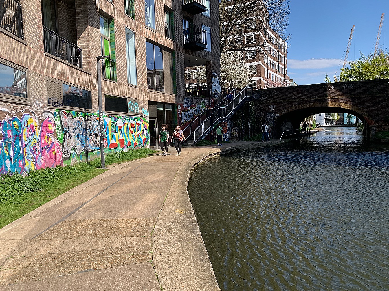 Our biggest challenge was finding lunch, as well as somewhere to SIT and EAT that lunch, which proved almost too much. (This was all very sad for me, as I’d been looking forward to visiting Camden very much.) After much gnashing of teeth (mostly mine toward Andrew), we recovered and exited the market and headed toward the canal.