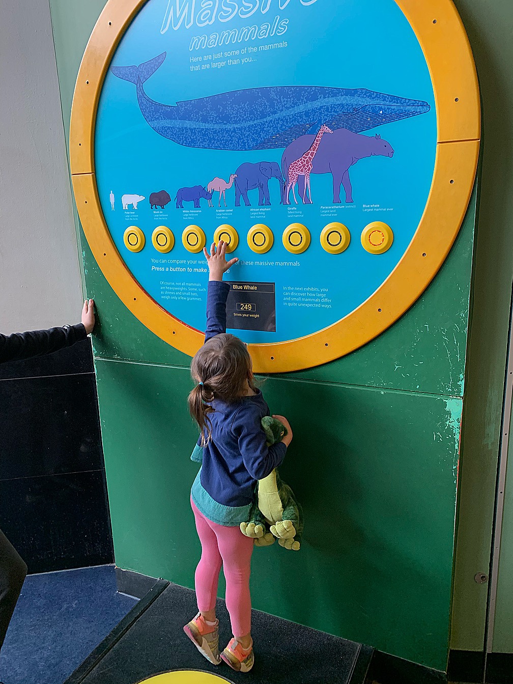The next day, Maelle and I started with a visit to the Natural History Museum. This was our favorite museum from last year, and she’d been asking for a ‘green dino stuffy’ for the past few months, so I figured why not see them again and at least get a stuffed toy with sentimental value.