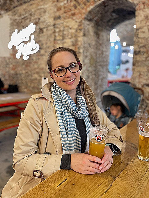 After we walked the canals and explored a little bit of Camden, we found ourselves at the Camden Town Brewery. Maelle had fallen asleep in her stroller, there was an impending rain storm, and we were exhausted after that crazy experience at the market. Unfortunately, despite my smile, I was actually still having a really hard time mentally. Even though the brewery was almost empty, the high ceilings exacerbated the noise–some guys playing pool nearby, the train overhead. I was truly surprised at how much I was still ‘feeling’ all of it. But, a little rest (and alcohol!) helps, and by the time we caught our train back, I was feeling much better.