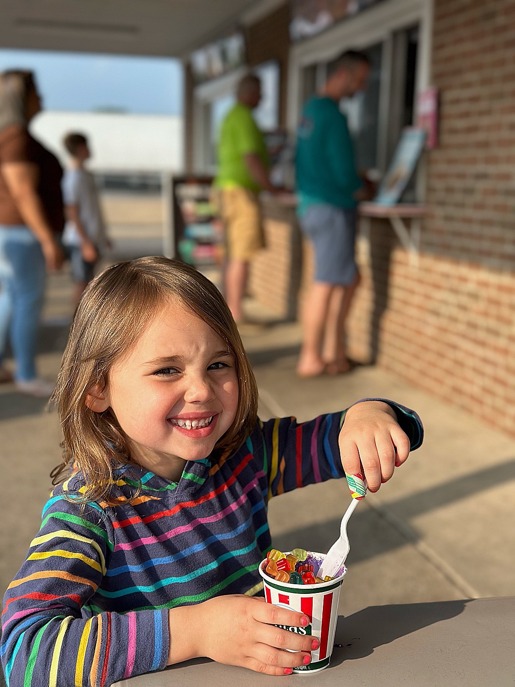 We drove down on a Monday afternoon, and made a stop at Rita’s on the way! Maelle has only been twice, but she knows Mommy gets mango, and she gets gummy bears!