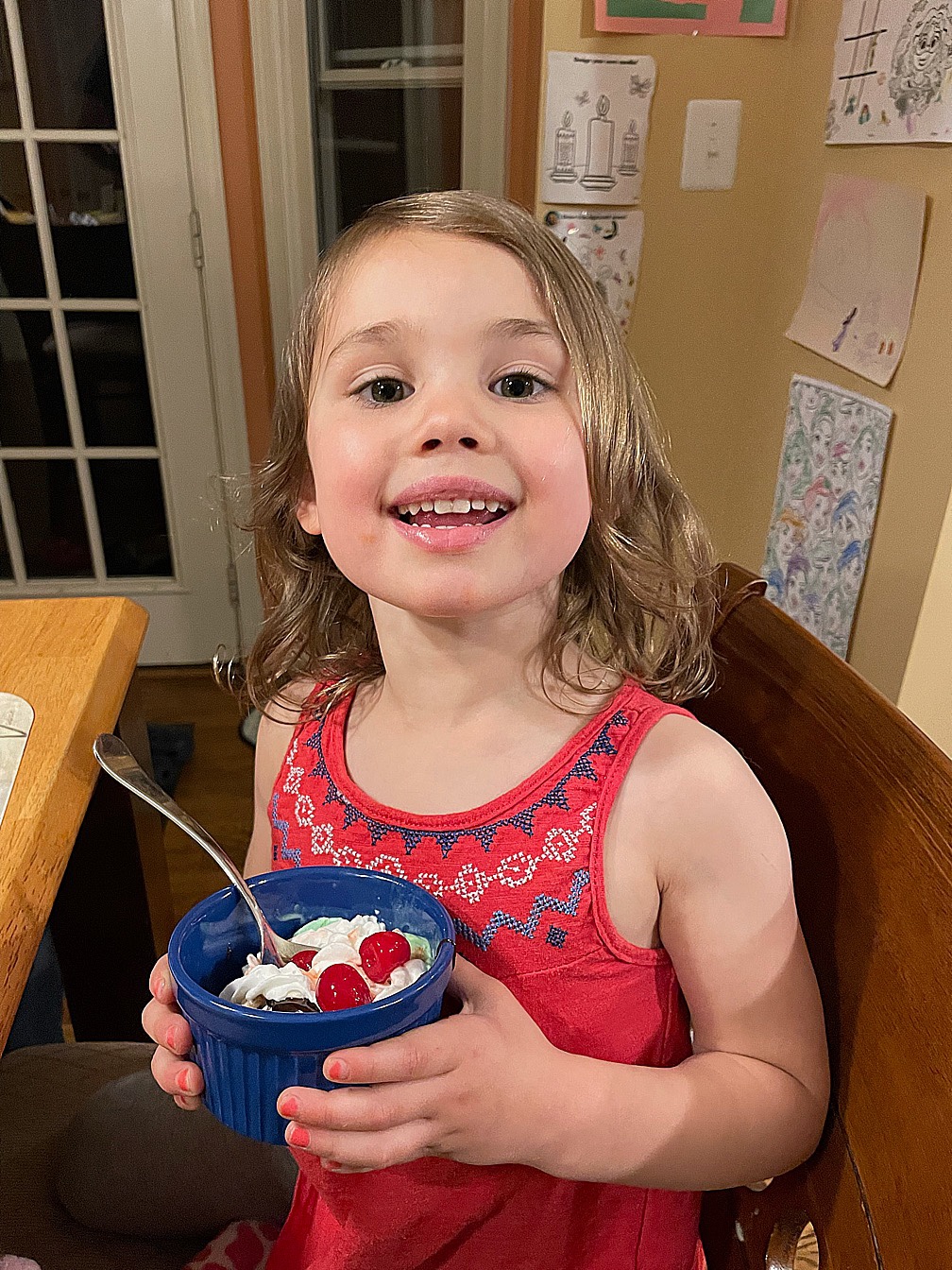 Perhaps the BEST part of the trip was when Nana and Grandpa took Maelle for TWO nights so we could go on some dates! Maelle got to make her own Hawaiian pizza and had ice cream for dessert!