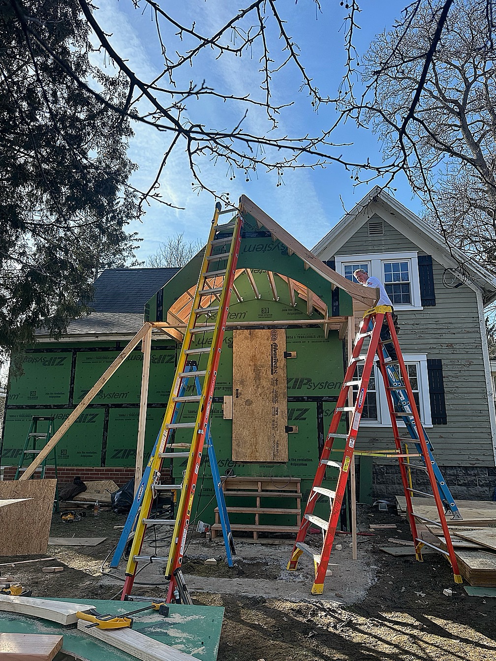 Next is framing for the kitchen addition, that includes a curved roof as well!