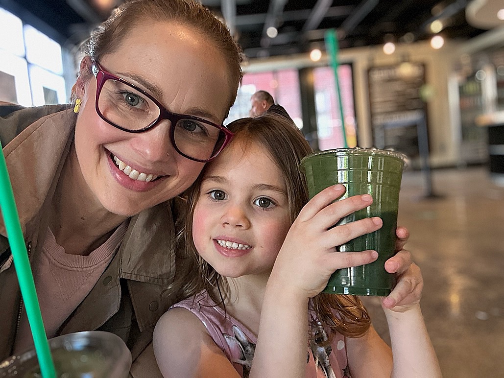 After playing at the park and running our usual errands in Old Town, Maelle and I split a Tropi-Kale smoothie from South Block. It’s a staple; she asks for a smoothie every time we visit!
