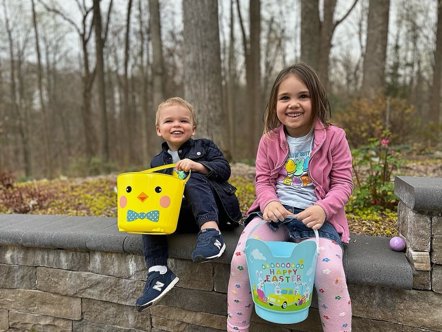 After our whirlwind trip into DC and then the trip to mom and dad’s (and subsequent children’s bedtimes), it was nice to have a slow morning at home. We did breakfast on our own, opened Easter baskets and then had an egg hunt. We’d decided not to go to church, which I didn’t love, but we did a family lunch at home instead and left in good shape.