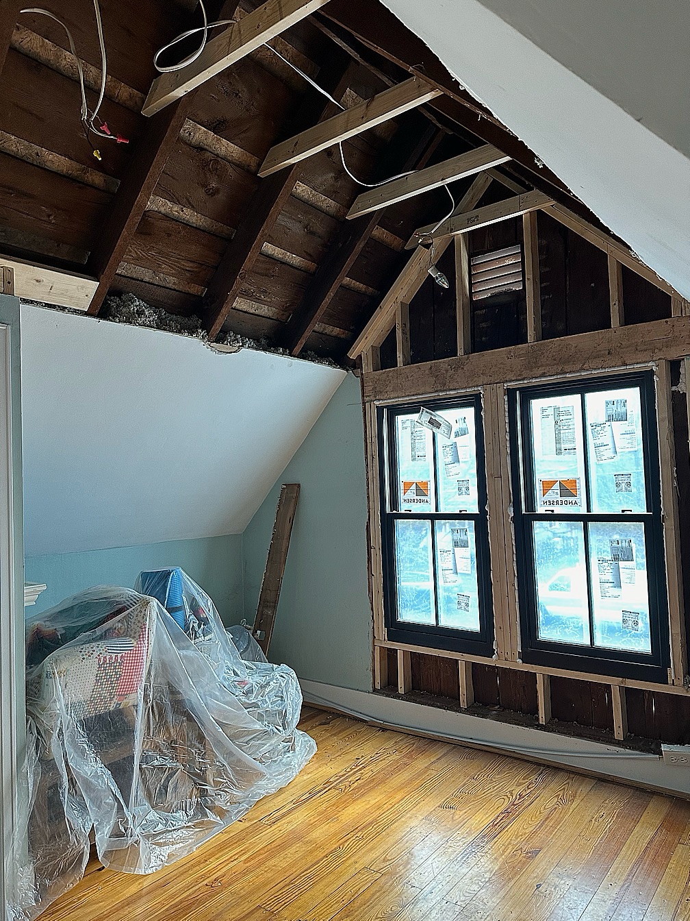 The new windows were in the scope of work, demoing the ceiling was not.