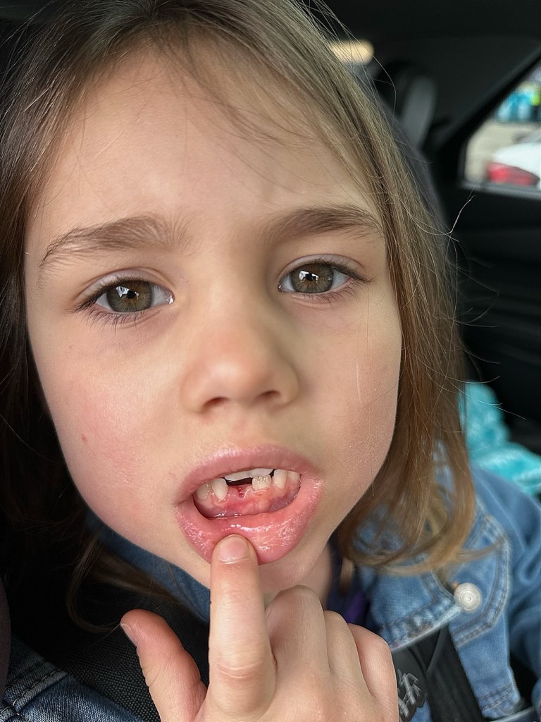 Hopefully this will be it for awhile??? She’s awfully young to have lost a tooth–let alone two–and both were related to trauma. Although, with how active our girl is, it wouldn’t surprise me if ALL her teeth came out after bumps and face-plants!