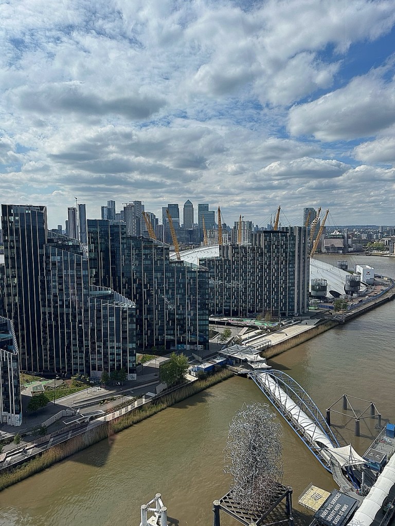 One place we’ve never visited while in London is the Docklands, which is a built-up, modernized business and residential area, built on the site of the former Port of London. You can access the area via cable car, which we did on the way over. This view is a set of high-rise apartments as you leave North Greenwich: