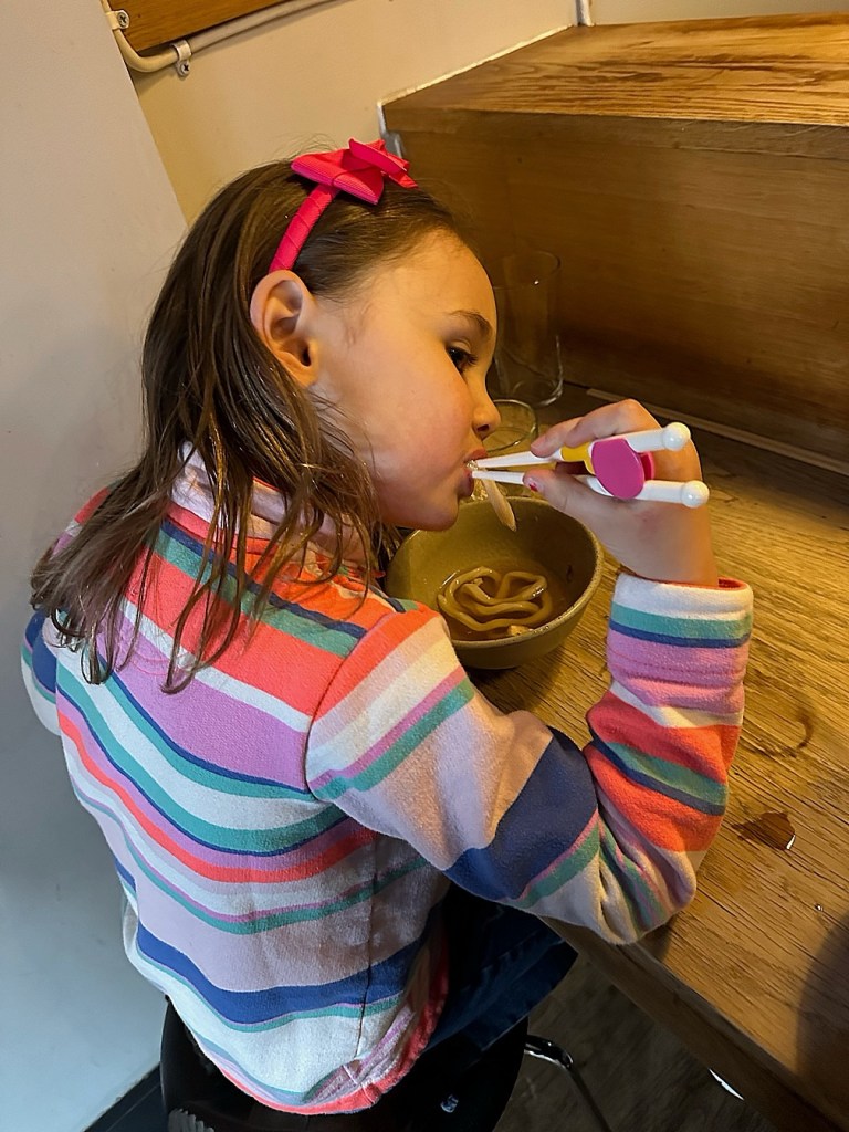 We took the tube back to London proper and ended up at Koya, another line-only dinner place. They had kid chopsticks for Maelle! (We actually have that same set at home.) She ate her pho with the best of them and we all slurped away after a long day of walking.