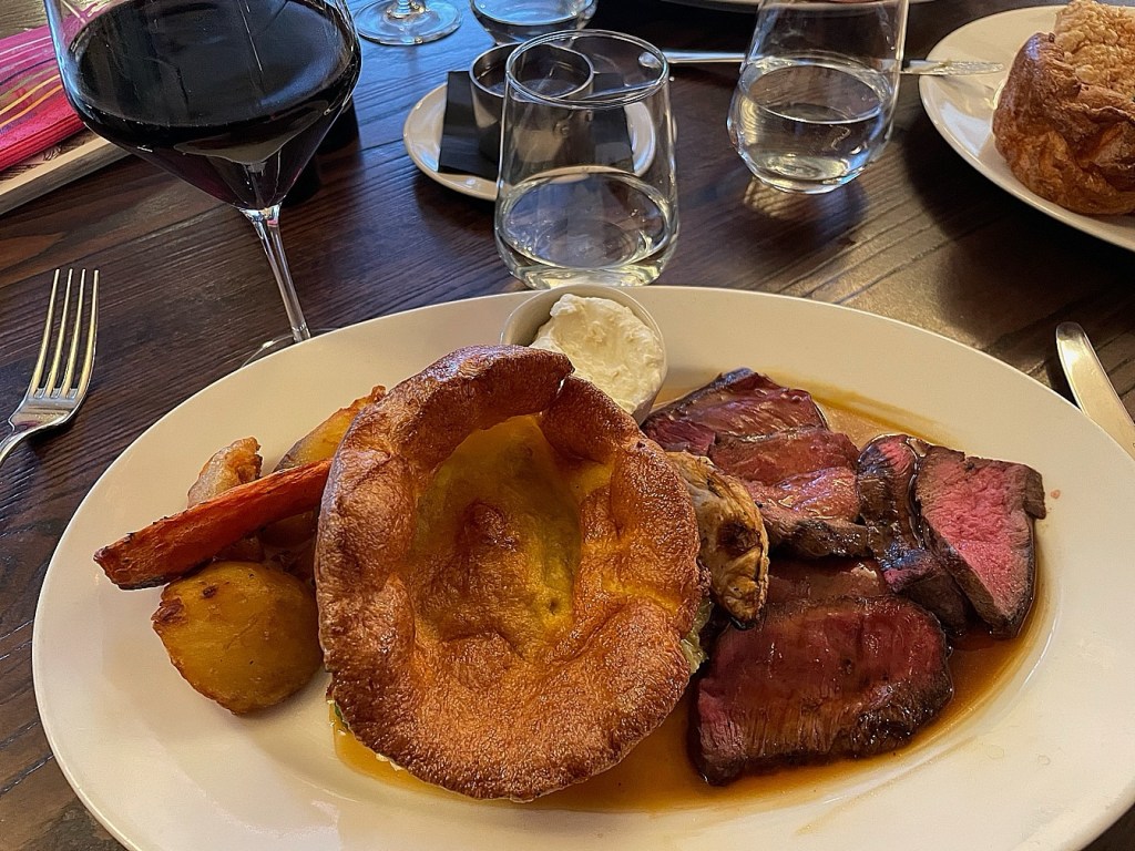 Unfortunately, I couldn’t find the adidas sneakers I’d been crushing on, so we headed to our last dinner: a Sunday roast! Apparently a Sunday roast is a ‘thing’ in England–not sure how or why I’ve never done this in all my trips here–and Andrew found us a great place to go. The Jugged Hare is in East London, not in our usual stomping grounds, but it was worth the trip! We each got our own roast (they had a kid’s portion for Maelle), which included roasted veggies, Yorkshire pudding and a choice of meat.