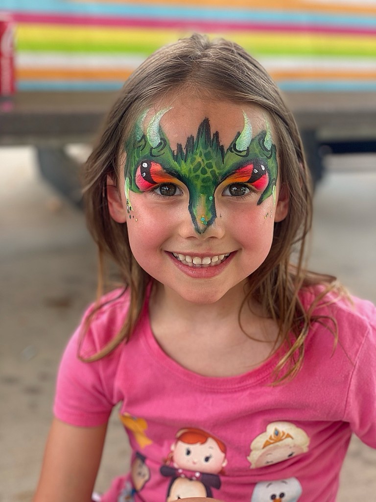 Meanwhile, Maelle flew with Nana to Atlanta to see Uncle Aaron, Aunt Sewon and Aiden! She got this amazing dragon face paint at Uncle Aaron’s work picnic they attended.