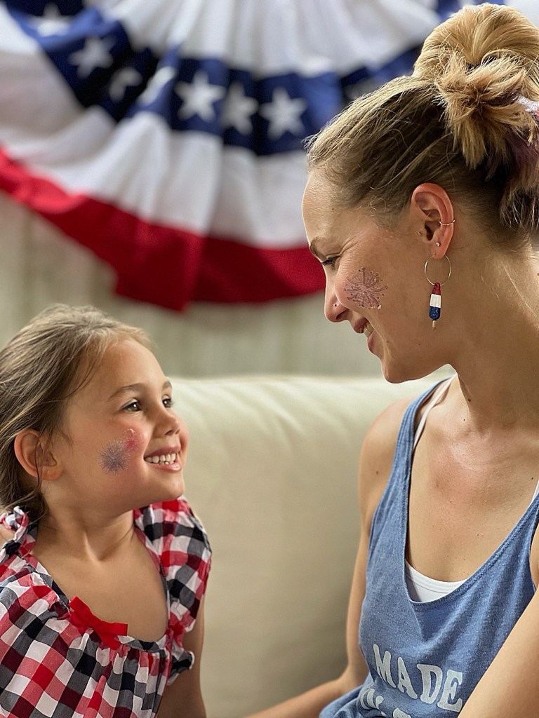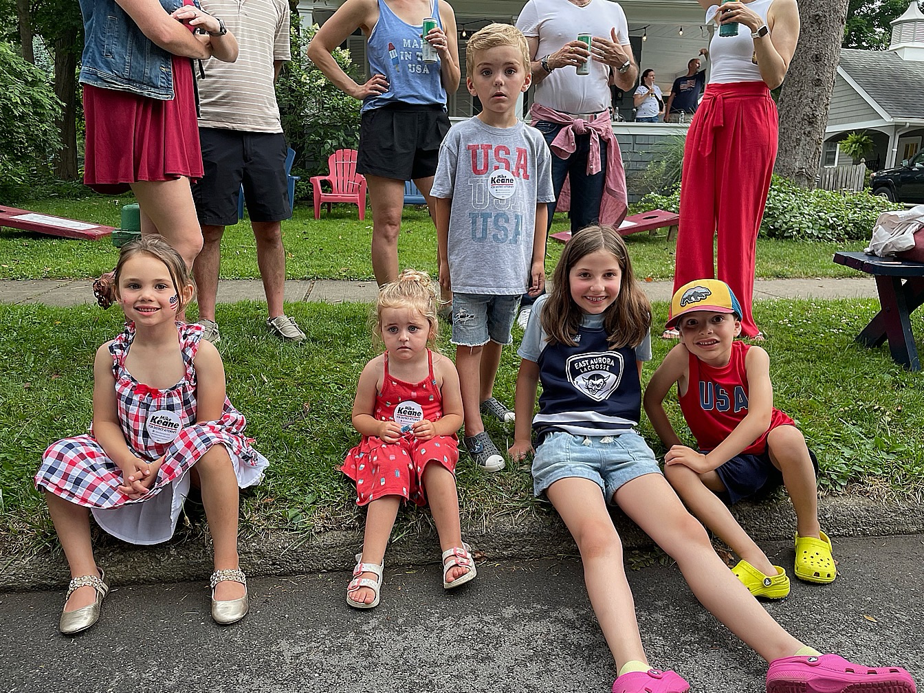 Afterward, we all cleaned up and got into our ‘3rd of July best,’ which for me is becoming the same outfit year after year: my light blue bomb pop tank with black shorts (pictured in a photo below). We grilled twice this year, once before the parade and once after. The kids had their own full-size table!
