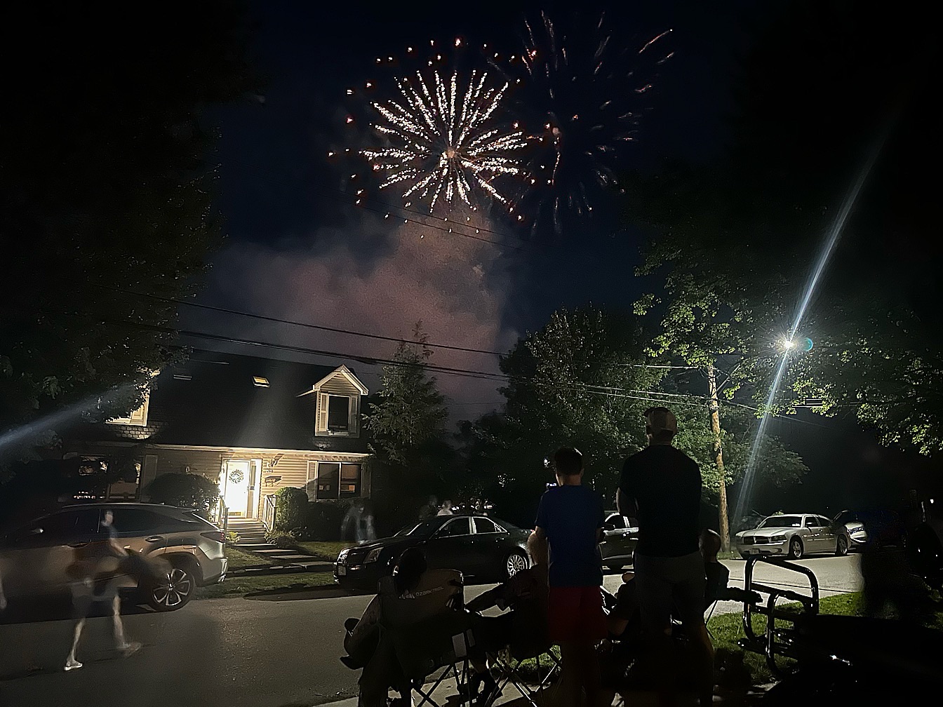 We may not be living in our house, but that wasn’t going to stop the fireworks from going off across the street!