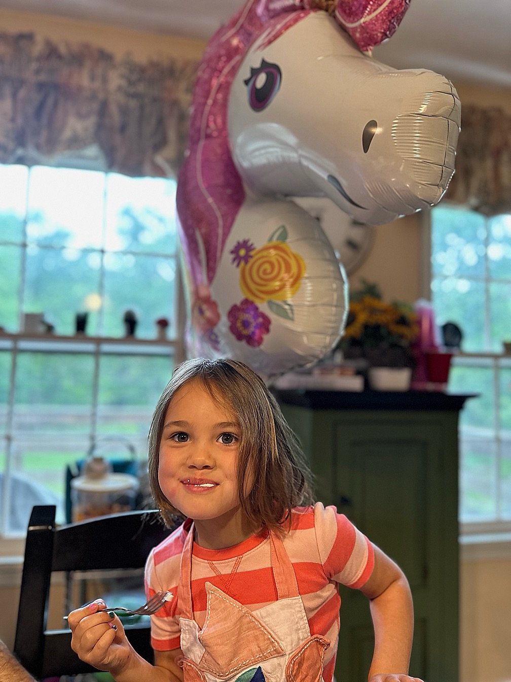 On the morning of her birthday, we made unicorn-shaped pancakes at Gram’s: