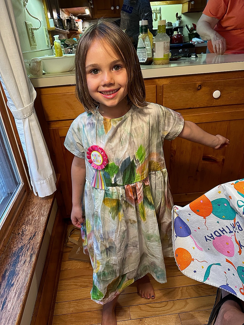 We celebrated one last time at the Nyes’ house, where she chose to wear her new dress from Paris and her ‘birthday girl’ button.