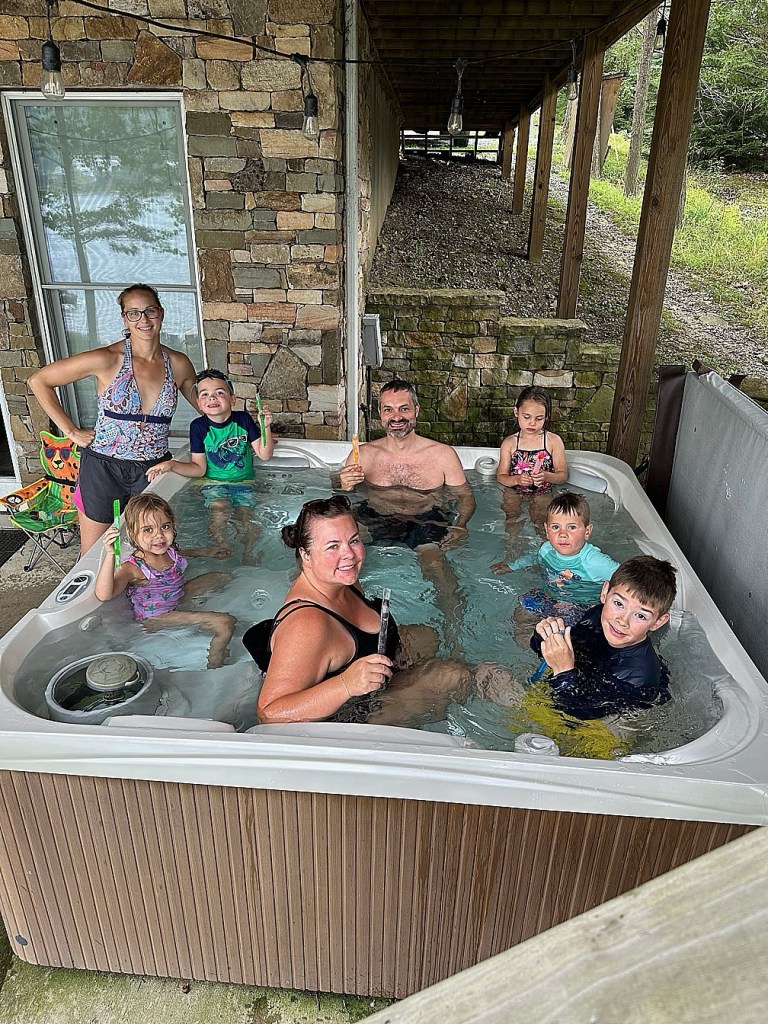 Freezie pops in the hot tub! Probably Uncle Andrew’s idea…