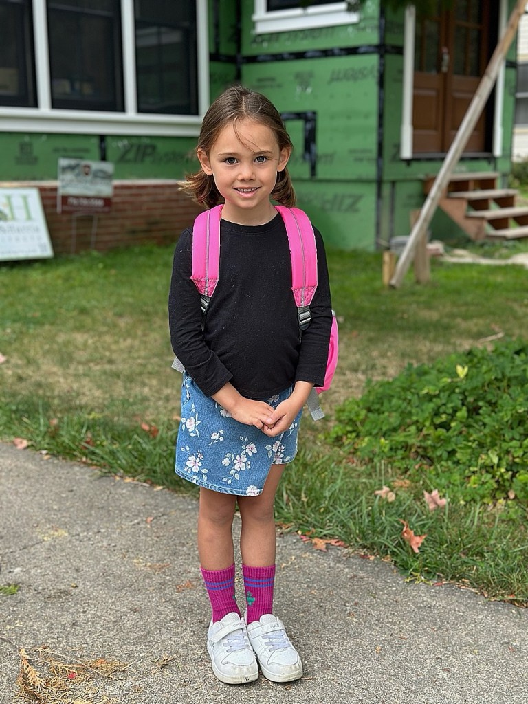 We have a kindergartener! Per usual, Maelle missed the first two weeks of school because we were at the beach, so her first day was later in September.