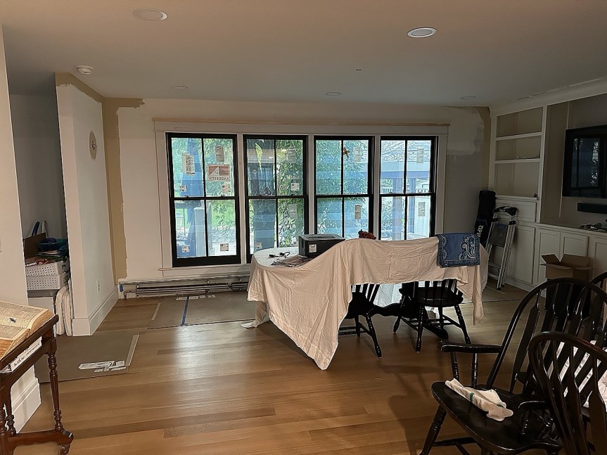 Believe it or not, we actually had more glass with the old windows! But, with the new shape of the room and our desire to have maximum ‘glass’ (without lots of trim in between or the need to re-support the wall) and open the windows, this was the best configuration we could come up with. We debated about the number, size, and placement of these windows for weeks. We were still firming up the order while we were driving up to the Toronto airport for our trip to Paris in June!