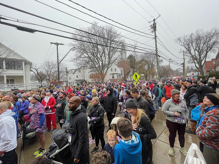I love that each year more and more people dress up in costume for the race! This year, my neighbor (far right, riding on a snowman’s shoulders) won the award.