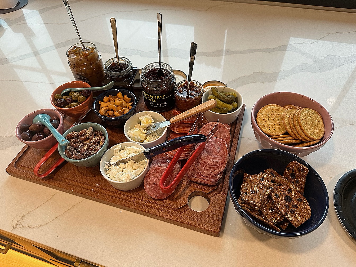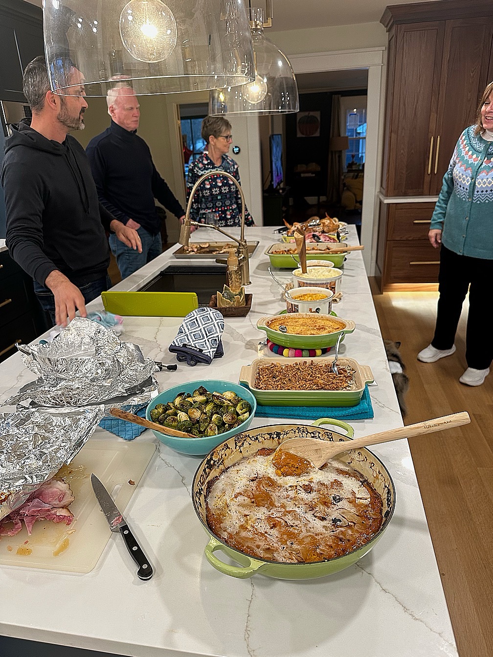 It took the whole length of the island to line up all the side dishes!