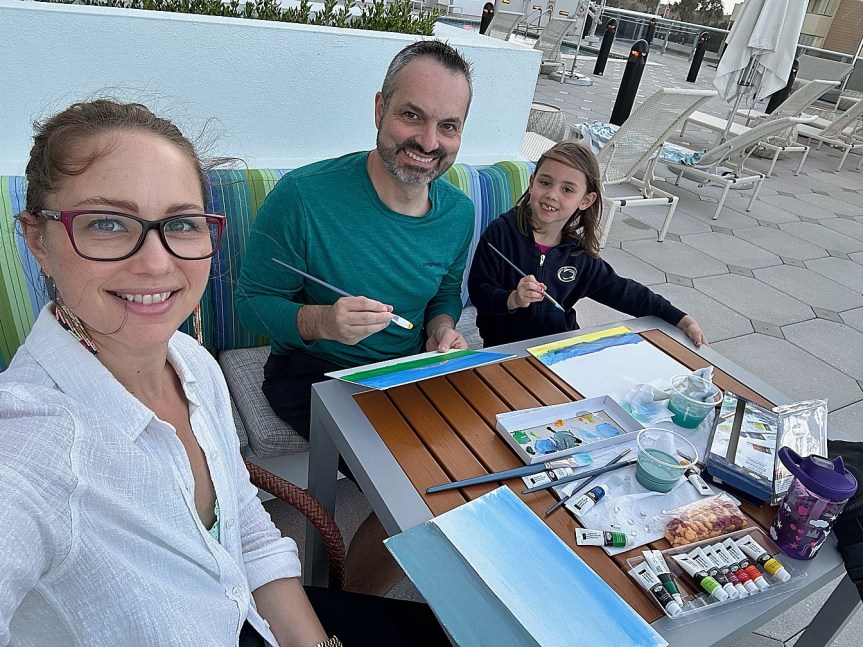 Andrew had the neat idea to pick up some art supplies at the store so we could all paint the sunset one evening. It was really fun, if a little windy.