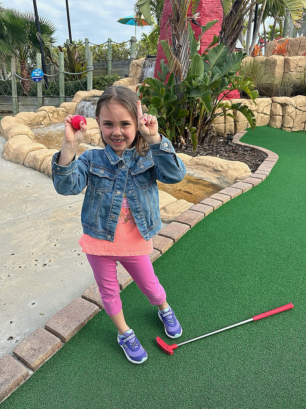 While Andrew had to work for a few days while we were there, we did take some time to visit Cocoa Beach and the Ron Jon Surf Shop. Maelle loves putt-putt, and even got a hole-in-one!