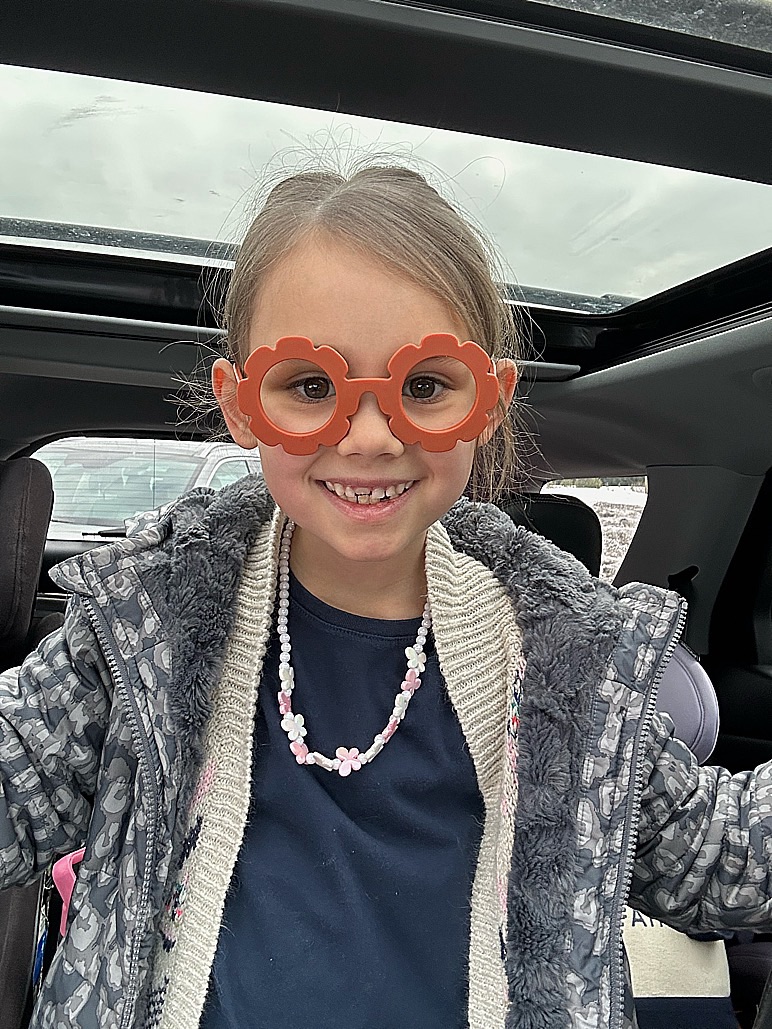 She took a spare piece of wood to use as a cane, and I even popped the lenses out of some of her sunglasses to make her a pair of glasses. (Unfortunately, she didn’t wear them.)