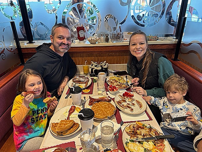 On Sunday morning, we hit the Waffle Shop for breakfast, which is ABSOLUTELY what you must do when you’re at Penn State. The lines are out the door all weekend, but it’s worth it for the chocolate chip pancakes and nostalgia.