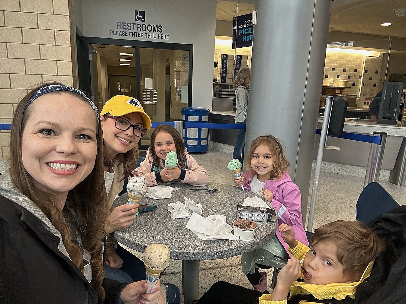 Obviously, while the boys were busy, Abigail and I wrangled the kids for a trip to the Penn State Creamery! (It’s still so weird for me to go to the ‘new’ creamery…when Andrew and I were students, it was still in the itty bitty building in North.)
