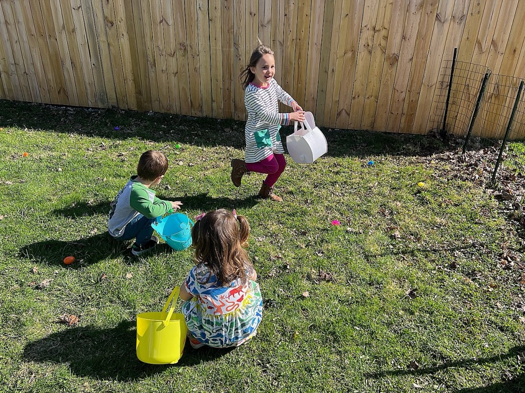 Later that day, we went to a friend’s house for another egg hunt! (I spy one of Maelle’s hand-me-down dresses in Ingrid, below!)