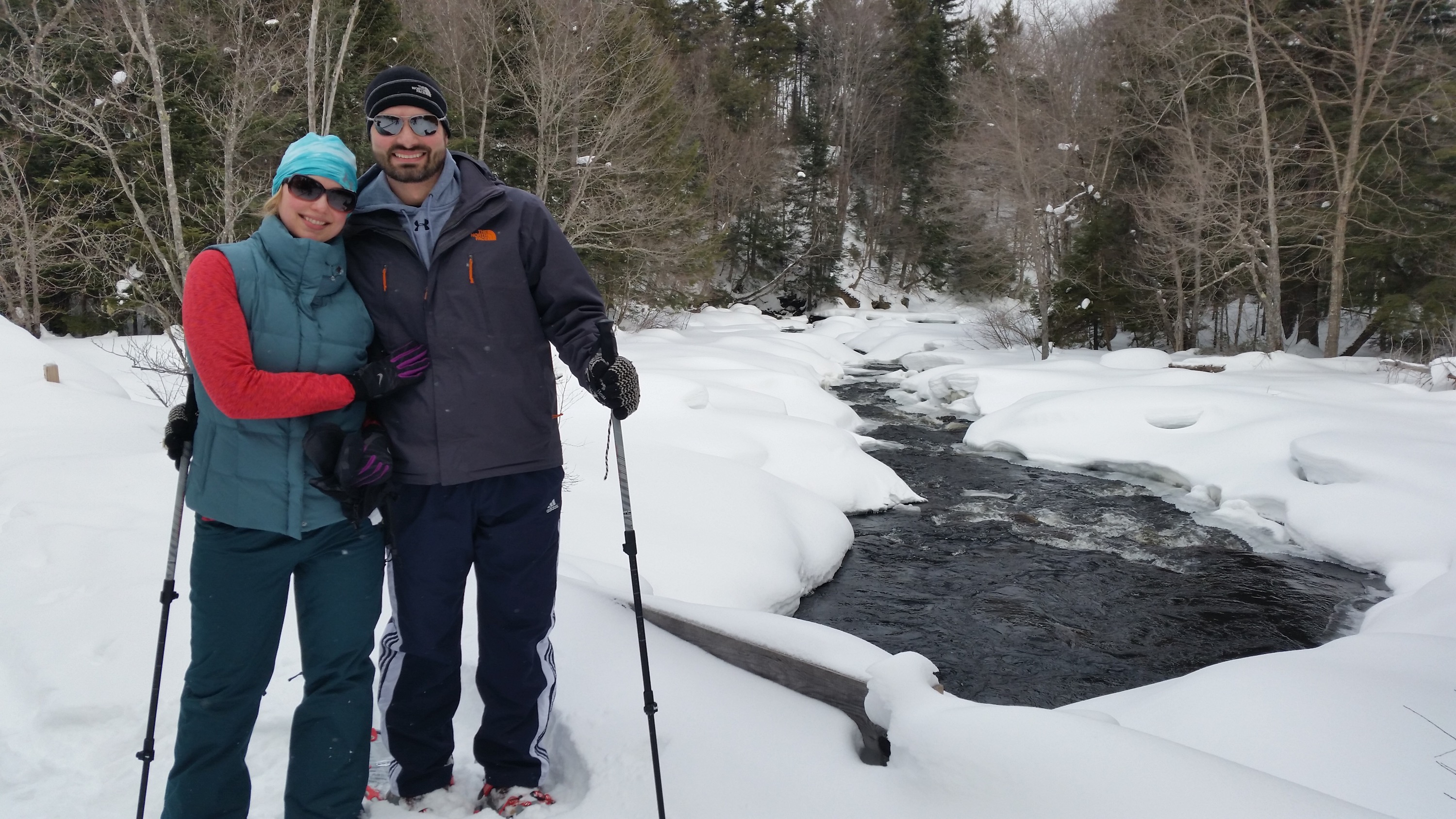 Andrew and I spent last weekend in Old Forge, NY, with some friends of ours. Paola is a classmate of mine at Buffalo State in the Dietetics program, and she and Mark got married this past fall. Mark grew up going to his family’s place, called ‘The Hut,’ in the Adirondacks. Old Forge is about four hours from Buffalo and a destination in both the summer and winter months. The Hut is on a lake, with a beautiful view from the living room. It’s a cozy, homey-type place–a few bedrooms and bathrooms, a kitchen and living room and fireplace. It’s decorated with very traditional ‘cabin’ decor–bears, ducks, pine trees, wood accents.
