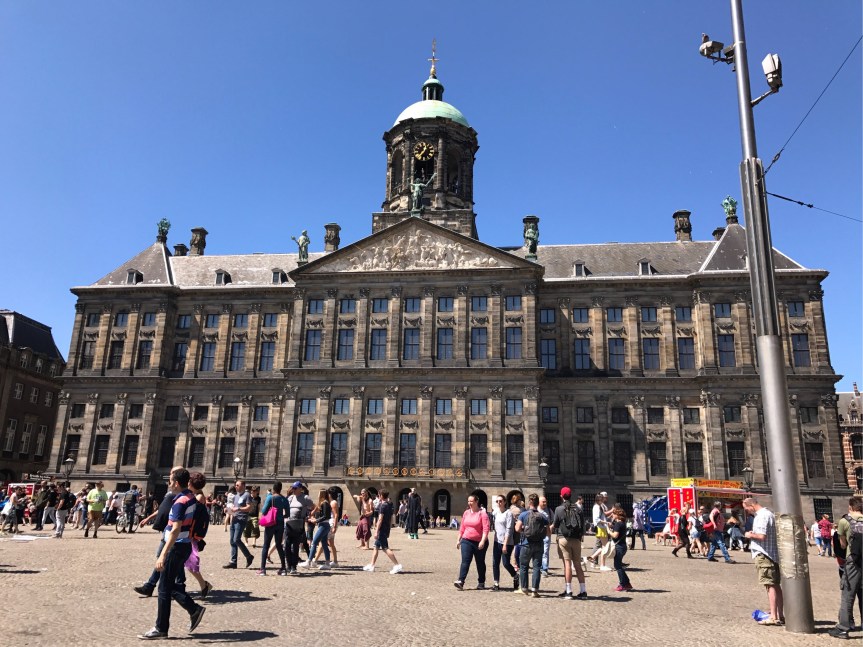 On a day trip to the city, Andrew and I started with Rick’s walking tour of the city, which brought us to Damrak and then to Dam Square, which is home to the Royal Palace. It was once so grand, it was referred to as the ‘Eighth Wonder of the World.’ It’s still used today for official functions. We toured the inside, marveling at the cavernous great hall, decorated with giant maps in the marble floor.