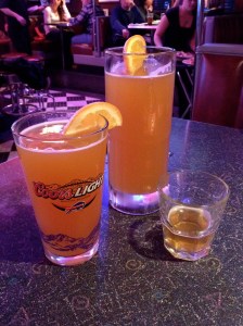 Isn’t this drink adorable?? It’s only 5 oz! That was my last drink of the night–a teeny, tiny glass of Southern Tier’s Pumking, which is a seasonal (obviously) specialty beer that’s very popular. This was also my first time in Aurora Brew Works, the newest ‘establishment,’ but I wouldn’t call it a bar. It’s more of an uber-specialty beer retailer with a few choices on tap for tasting and some tables. I think they might be trying to incorporate some food items, but for now they just have a ‘snack bar’ where you can buy candy bars and things.