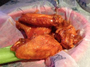 And yes, they were everything I hoped for, and more. They had enough “buffalo” flavor to fulfill that ubiquitous ‘wing taste,’ but with a kick of something more. Not spicy, just really flavorful. The bleu cheese wasn’t a dominant flavor, and Andrew was brave enough to give it a try. We just might be ordering those next time…we both ended up saving the sauce to dip our fries!