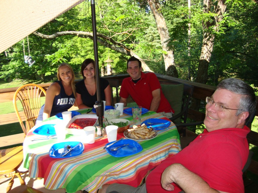 Ben and Andrew’s dad dressed alike. It was cute. And the tablecloth zipped onto the table (around the pole for the umbrella)–how neat!
