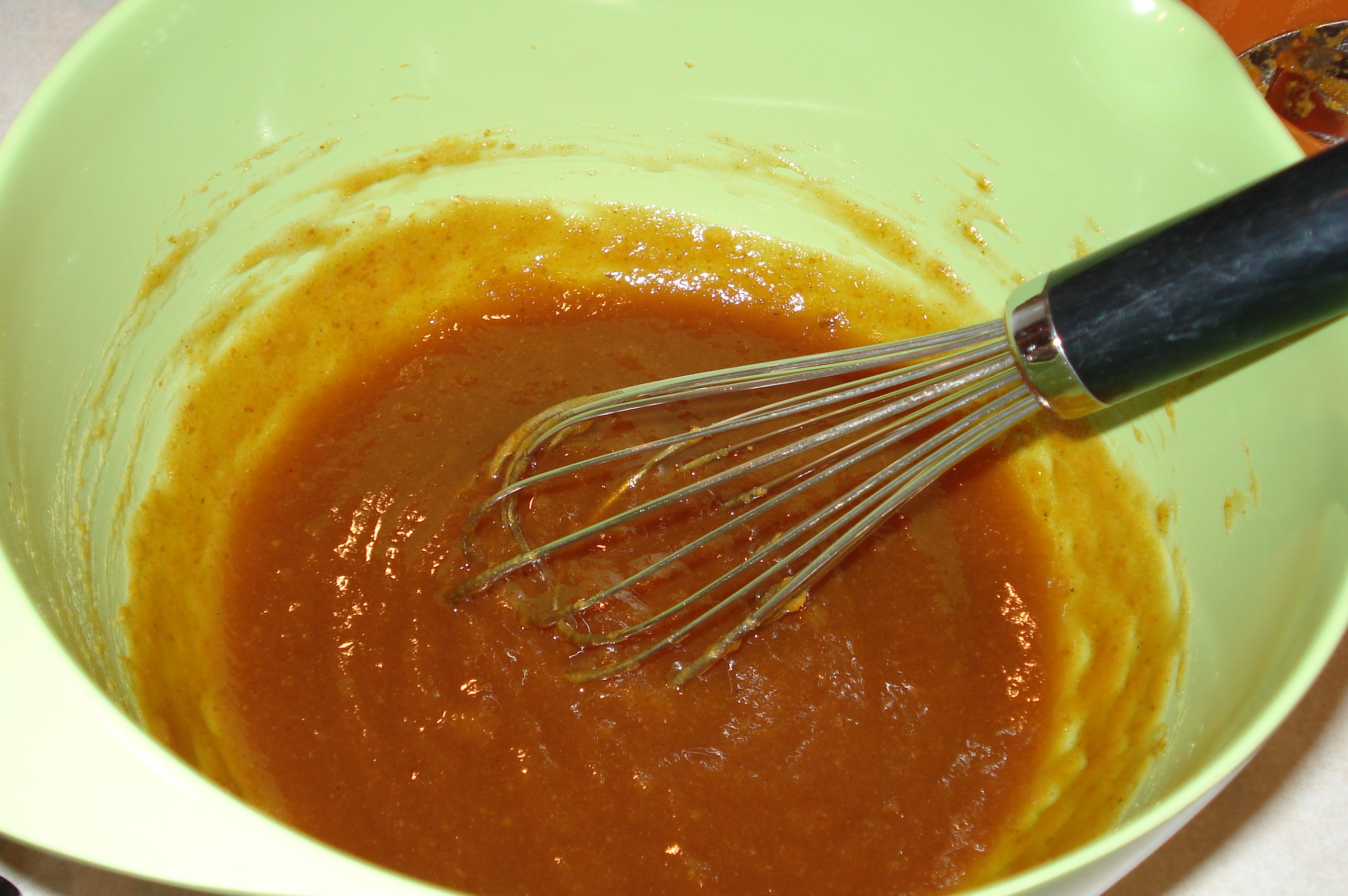 2. In a medium bowl, whisk together brown sugar, pumpkin, applesauce, maple syrup and vanilla. Pour over oat mixture and stir until combined. Spread the mixture onto the baking sheet.