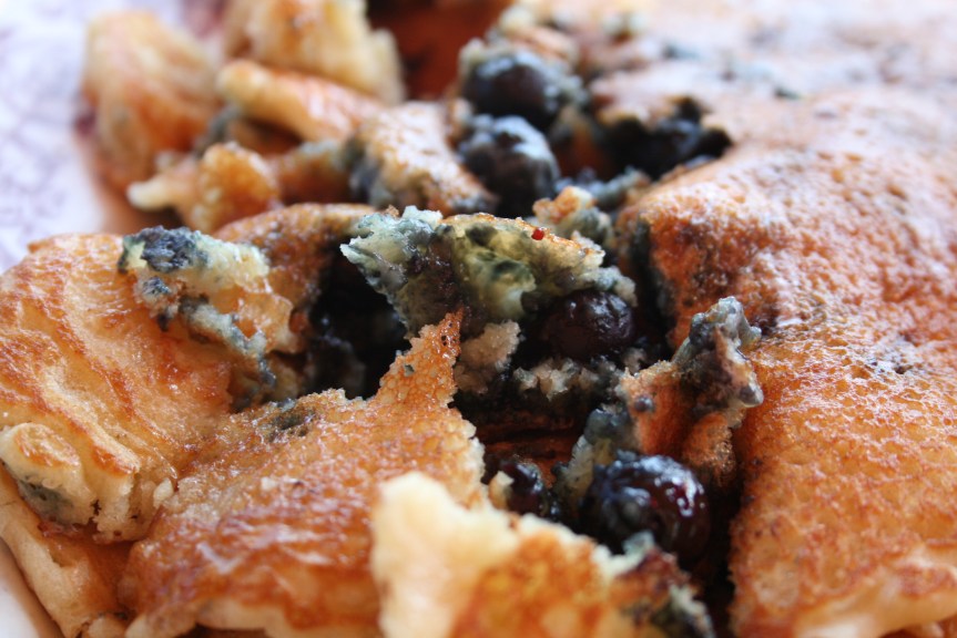 BLUEBERRY PANCAKES! They have the best, hands down. Super doughy and sweet and GIANT plump berries! Seriously, they are that good.