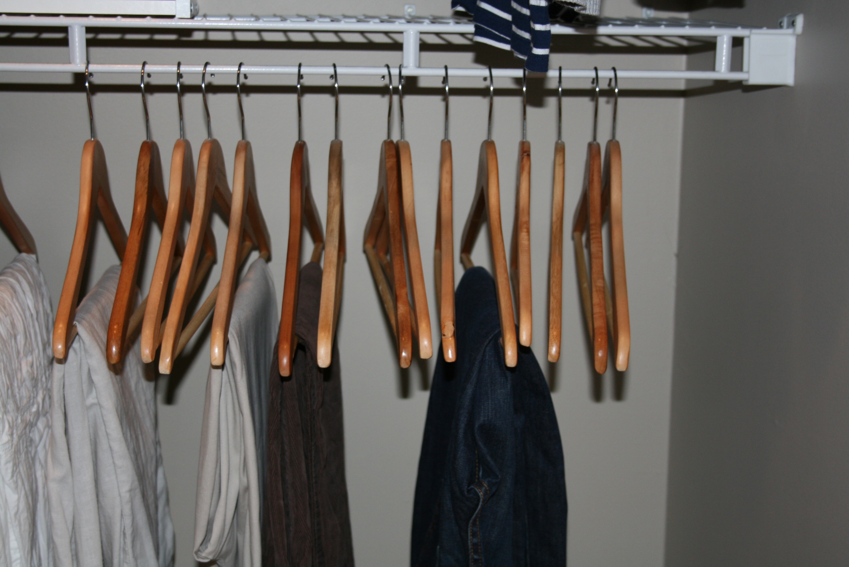 All of those hangers had had jeans or other pants on them. They don’t fit anymore! (And to be honest, the three in the middle you see hanging here are too big, but not falling off yet.) I packed away the best of them (for, God-willing, I gain the good kind of weight that begins to come off 9 months later…) and will donate the rest to Goodwill. I found some great Gap and Nine & Co. jeans and pants yesterday there, so I’ve been able to re-populate some of my closet with size 8’s–HOORAY!