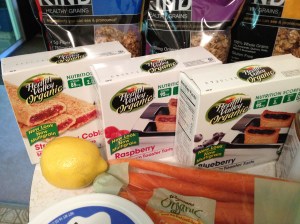 …like this one for Health Valley Organic cereal bars and ‘pop tarts.’ It was $1 off each, and the blueberry was just calling to me. (Blueberry totally has been these days! I already made a plan to make Ellie Krieger’s blueberry muffins this weekend…) I figured Andrew would like the strawberry bars and I could mix some warmed ‘toaster tarts’ into our morning breakfast routine.